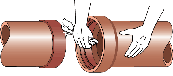 3. Insert spigot end firmly into socket immediately after applying lubricant